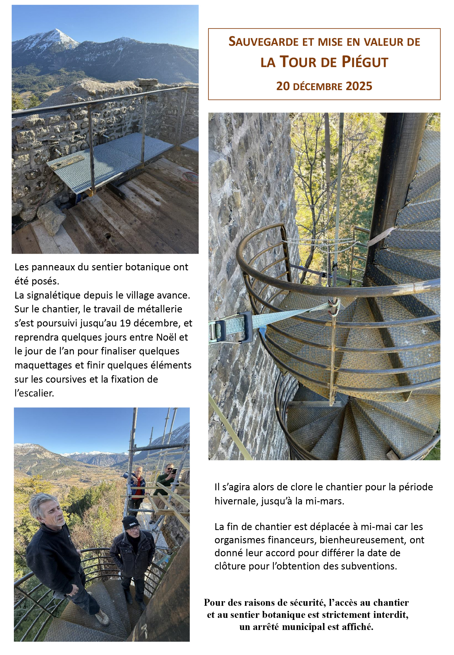 Pour des raisons de sécurité, l’accès au chantier et au sentier botanique est strictement interdit, un arrêté municipal est affiché.