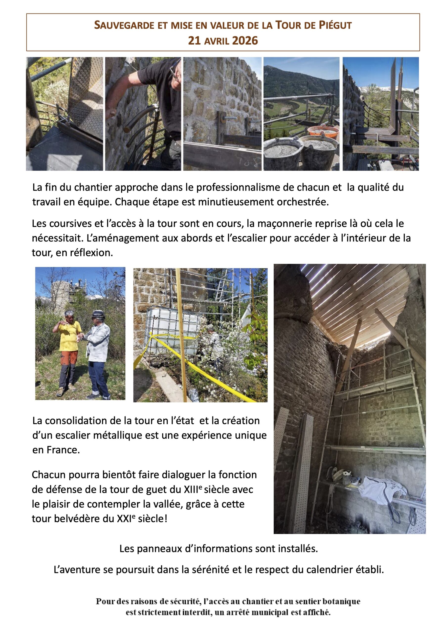 – la Tour de Piégut, projet sur lequel C&P travaille depuis 2017, avec le très large soutien des thoramiens comme en témoigne la souscription de la Fondation du patrimoine.